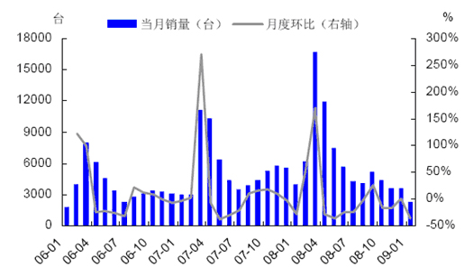 圖表:2006-2009年挖掘機月度銷量分析