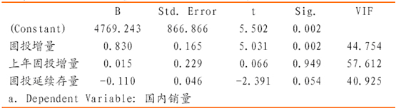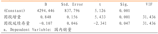 輪起銷量=b0+b1×固定資產投資增量+b2×上年固定資產投資增量+b3×固定資產投資延續存量………………...(3)