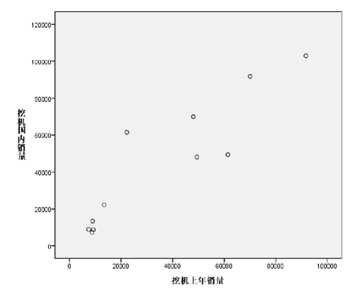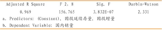 經過反復比較考量,我們覺得在模型中只放入固定資產投資增量和上年固定資產延續存量 兩個變量的模型對輪式起重機的銷售具有較高的解釋作用,各方面的統計數字都較令人滿意。我們最終設計的模型為: