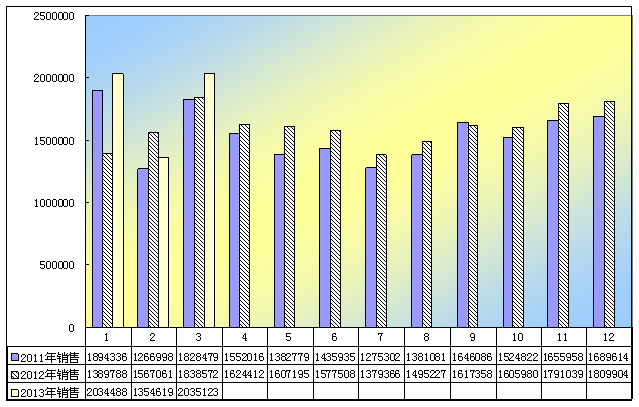 核心提示:2011~2013年我國汽車月度銷售情況一、總體市場概述