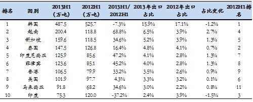綜合來看,受各國增加公共建設(shè)支出及強(qiáng)勁消費支出等因素影響,東盟各國GDP增速較快。2012年菲律賓經(jīng)濟(jì)增長達(dá)6.6%,高居?xùn)|南亞之首,印度尼西亞經(jīng)濟(jì)增長為6.2%、馬來西亞為5.6%、越南為5.0%、泰國為6.4%,由于經(jīng)濟(jì)增長強(qiáng)勁,東盟地區(qū)中短期鋼材需求增長可期。長期以來,由于我國的地域和低價優(yōu)勢,使得我國成為東盟重要的進(jìn)口國。不過,由于我國出口的產(chǎn)品與東盟本地產(chǎn)品形成直接競爭,導(dǎo)致貿(mào)易摩擦日益嚴(yán)重;而隨著東盟各國的快速發(fā)展,海外鋼企加大了在東盟各國的鋼鐵產(chǎn)業(yè)投資,使得東盟地區(qū)的鋼材自給率逐年提高,均對我國出口東盟造成一定的負(fù)面影響。未來,我國對東盟市場出口增速或難以維持今年上半年的較高增速。