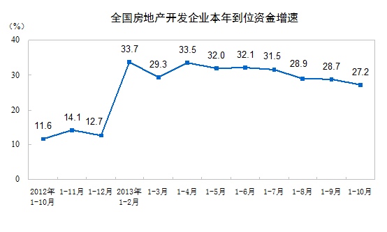 2013年1-10月份,全國房地產(chǎn)開發(fā)投資68693億元,同比增長19.2%,增速比1-9月份回落0.5個百分點。其中,住宅投資47222億元,增長18.9%,增速回落0.6個百分點,占房地產(chǎn)開發(fā)投資的比重為68.7%。
