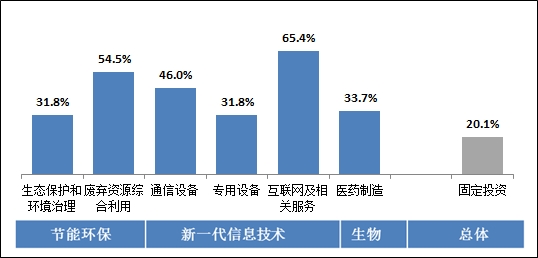 圖2 2013年1-6月部分戰略性新興產業投資累計同比增速