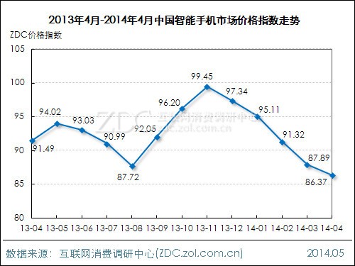 (圖) 2013年4月-2014年4月中國智能手機市場價格指數走勢