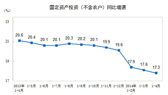 2014年1-4月份全國固定資產(chǎn)投資增長17.3%