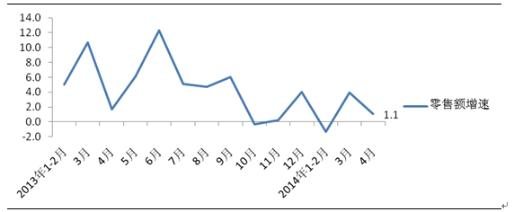2014年4月份全國百家大型零售企業服裝零售額增長1.1%