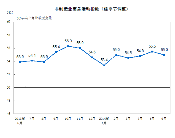 2014年6月中國非制造業商務活動指數為55.0%