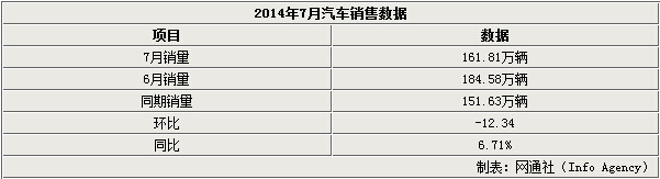 核心提示:7月全國汽車環(huán)比下降12.34% 日產(chǎn)汽車最顯著8月8日,中國汽車工業(yè)協(xié)會(huì)發(fā)布了2014年7月汽車產(chǎn)銷數(shù)據(jù),據(jù)數(shù)據(jù)顯示,7月份汽車產(chǎn)銷環(huán)比有所下降,同比保持穩(wěn)定增長。7月份全國汽車銷量達(dá)161.81萬輛,環(huán)比下降12.34%,同比增長6.71%。在汽車品牌中,數(shù)日系車企降幅最為顯著;乘用車方面,日系品牌車用車銷售20.96萬輛,僅占乘用車銷售總量的15.43%。身為日系三大巨頭的車企們,7月份銷量不能幸免地下跌。