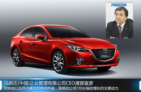馬自達(dá)(中國)企業(yè)管理有限公司CEO渡部宣彥表示,Mazda6 Atenza阿特茲以及Mazda3 Axela昂克賽拉持續(xù)熱銷,是推動(dòng)該公司7月份強(qiáng)勁增長的主要?jiǎng)恿?而國產(chǎn)馬自達(dá)CX-7 SUV也已經(jīng)在7月30日上市,預(yù)計(jì)將進(jìn)一步推動(dòng)馬自達(dá)在華銷量的增長。