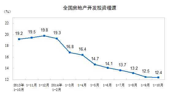 2014年1-10月份全國(guó)房地產(chǎn)開(kāi)發(fā)投資增12.4%