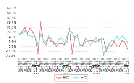 核心提示:前11月內地與香港貿易總值為2.05萬億 下降8.9%海關總署今日公布數據,11月進出口總值3688.5億美元,下降0.5%。其中,出口2116.6億美元,增長4.7%;進口1571.9億美元,下降6.7%;貿易順差544.7億美元,擴大61.4%。