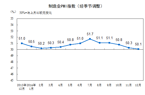 2014年12月中國(guó)制造業(yè)采購(gòu)經(jīng)理指數(shù)為50.1%