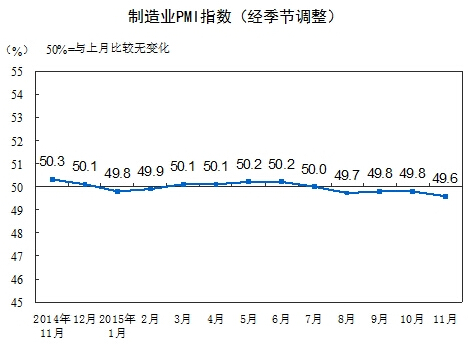核心提示:2015年11月份,中國制造業(yè)采購經(jīng)理指數(shù)PMI為49.6%,比上月回落0.2個(gè)百分點(diǎn)。