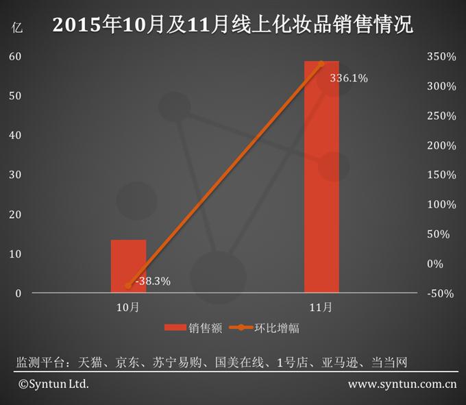 2015年11月網(wǎng)上化妝品銷售突破58.6億