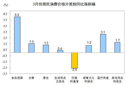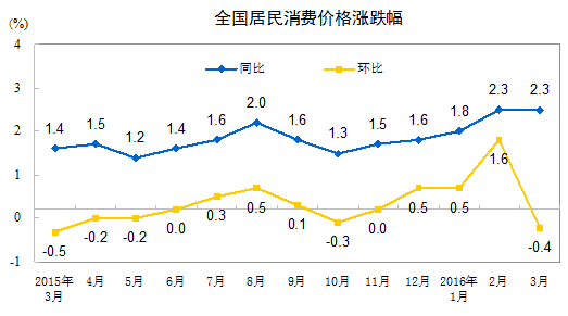 3月全國(guó)居民消費(fèi)價(jià)格總水平同比上漲2.3%