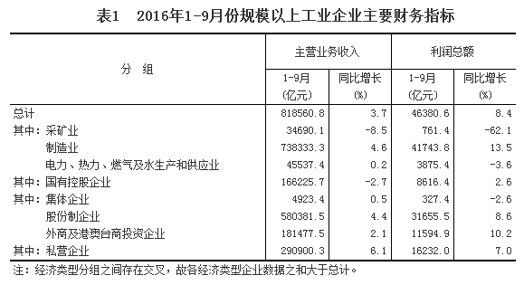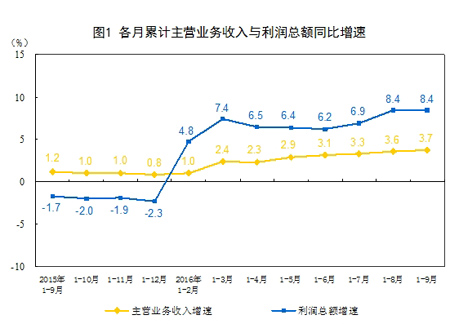 2016年1-9月份全國規(guī)模以上工業(yè)企業(yè)利潤總額同比增長8.4%