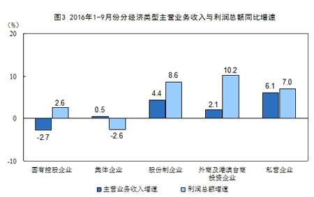 1-9月份,規(guī)模以上工業(yè)企業(yè)中,國有控股企業(yè)實(shí)現(xiàn)利潤總額8616.4億元,同比增長2.6%;集體企業(yè)實(shí)現(xiàn)利潤總額327.4億元,下降2.6%;股份制企業(yè)實(shí)現(xiàn)利潤總額31655.5億元,增長8.6%;外商及港澳臺商投資企業(yè)實(shí)現(xiàn)利潤總額11594.9億元,增長10.2%;私營企業(yè)實(shí)現(xiàn)利潤總額16232億元,增長7%。