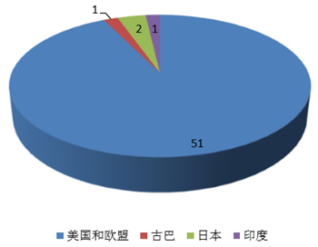 國(guó)外 55 個(gè)原研抗體藥中有 51 個(gè)在歐美首批上市