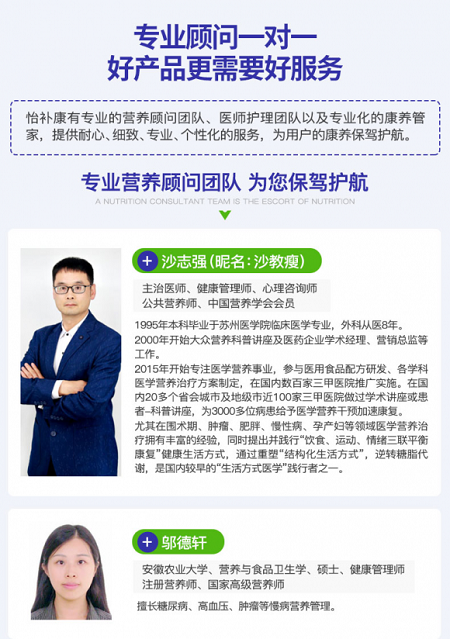 除了通過怡補康的功效與作用(專業化、精準化的營養支持)為患者保駕護航,怡補康還用體貼入微的服務精神來回饋患者。據悉,怡補康擁有一支專業服務團隊,由營養顧問、醫師護理以及康養管家(小程序)組成,為患者提供耐心、細致、個性化的多對一服務。通過康養管家對患者基礎體征的追蹤,醫師護理團隊將判斷分析患者當前面臨的情況,從而為患者康復提出個性化康養方案;而營養顧問則幫助患者更好地面對手術、放化療及康復期的每一個問題,一路為其保駕護航。