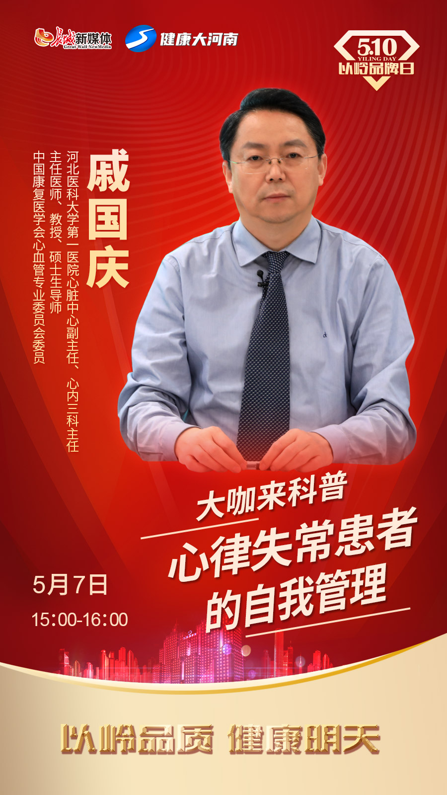 5月7日下午15點,以嶺藥業(yè)特邀河北醫(yī)科大學(xué)第一醫(yī)院心內(nèi)三科主任、主任醫(yī)師戚國慶教授,通過長城網(wǎng)、健康大河南直播《心律失常患者的自我管理》專題講座,為廣大網(wǎng)友科普心律失常的相關(guān)知識,教您科學(xué)預(yù)防和治療心律失常,及時發(fā)現(xiàn)和避開心律失常所帶來的危險,讓您生活健康更安心。