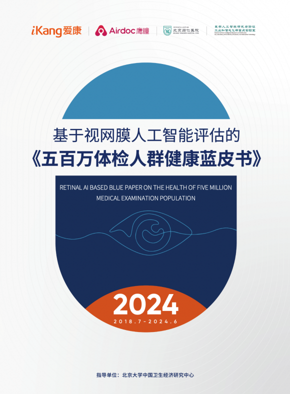 核心提示:在超500萬人次的人工智能視網膜健康評估結果中,整體異常檢出率為77.4%。從歷年結果對比分析數據顯示,整體眼底異常檢出率仍處于上升趨勢,2023-2024年眼底異常總檢出率超過78%。2024 年 12 月 20 日,在北京大學中國衛生經濟研究中心的指導下,由首都醫科大學附屬北京同仁醫院、醫學人工智能研究與驗證工業和信息化部重點實驗室、愛康集團與鷹瞳科技共同發起,人民健康支持的 2024 版基于視網膜人工智能評估的《五百萬體檢人群健康藍皮書》(以下簡稱 “《藍皮書》”)在北京正式發布!