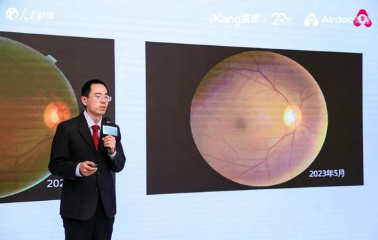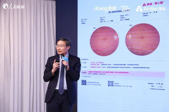 發布會現場,首都醫科大學附屬北京同仁醫院副院長魏文斌,愛康集團創始人、董事長兼CEO張黎剛,鷹瞳科技創始人、董事長張大磊分別做主題分享,圍繞視網膜影像技術與醫療人工智能領域的新技術融合、最新發展動態及前沿應用實踐,展開了深入的探討與分享。現場還特別設置患者分享和專家深度解讀環節,生動詮釋了定期進行眼底檢查,以及早篩查、早診斷、早治療的重要性與積極意義。