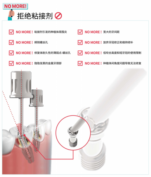 在傳統(tǒng)的種植牙修復(fù)過程中,醫(yī)生通常需要使用粘接劑將修復(fù)體與基臺固定,這種方法在臨床實(shí)踐中雖然普遍,但也帶來了一系列隱患。粘接劑在操作過程中可能殘留在口腔中,導(dǎo)致口腔衛(wèi)生難以維持,進(jìn)而引發(fā)感染、種植體周圍炎等問題。此外,粘接過程稍有偏差可能影響修復(fù)體的牢固性、耐用性以及美觀度。因此,如何在保持修復(fù)體穩(wěn)定性的同時,簡化手術(shù)流程并降低后期并發(fā)癥的風(fēng)險,成為了行業(yè)亟待解決的難題。柯威爾SFIT無粘接修復(fù)系統(tǒng)的問世,徹底解決了這一歷史性難題。