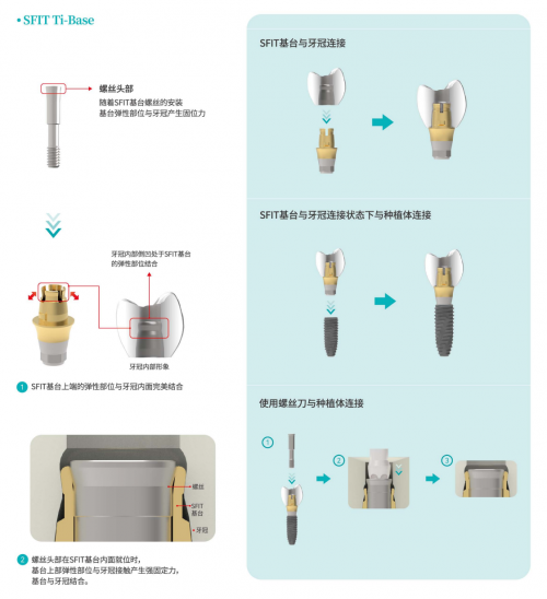 SFIT系統(tǒng)采用的無粘接固位技術(shù),通過基臺翼狀彈性部位與牙冠倒凹的緊密結(jié)合,實(shí)現(xiàn)強(qiáng)力固位。這種設(shè)計不僅避免了粘接劑的使用,還提供了超過200Ncm的出色固位力,滿足臨床對高強(qiáng)度固位的需求。這種創(chuàng)新的固位方式,從原理上避免了可能由粘接劑引發(fā)的并發(fā)癥問題,顯著提升了治療的安全性。