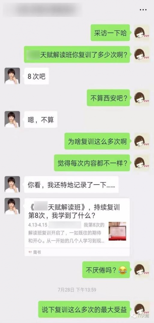 想必大家都跟我一樣,很想知道其中的原因吧,所以就代表大家采訪了兩位復訓次數最多的小伙伴,對話截圖如下: