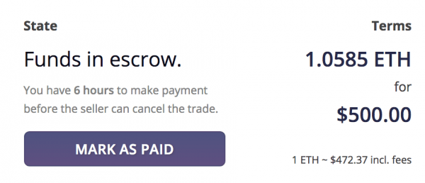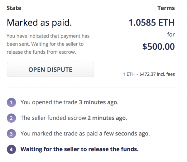 當交易者創建訂單后,兩方之間便建立了交易。當交易者輸入他們想要購買或出售的以太幣數量,該訂單的匯率被鎖定在交易中。
