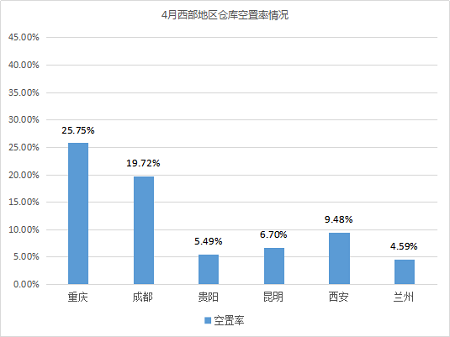倉庫空置率較高的城市為大連、重慶,均高于25%。相較3月,兩個城市倉庫空置率相對穩定,波動不大。