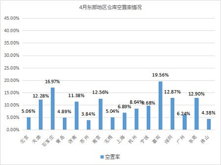 相較3月,濟南倉庫空置率波動最大,環比下降6.23個百分點,主要因濟南老城區老舊倉庫拆遷,部分企業被迫另尋倉源,釋放了部分租倉需求。