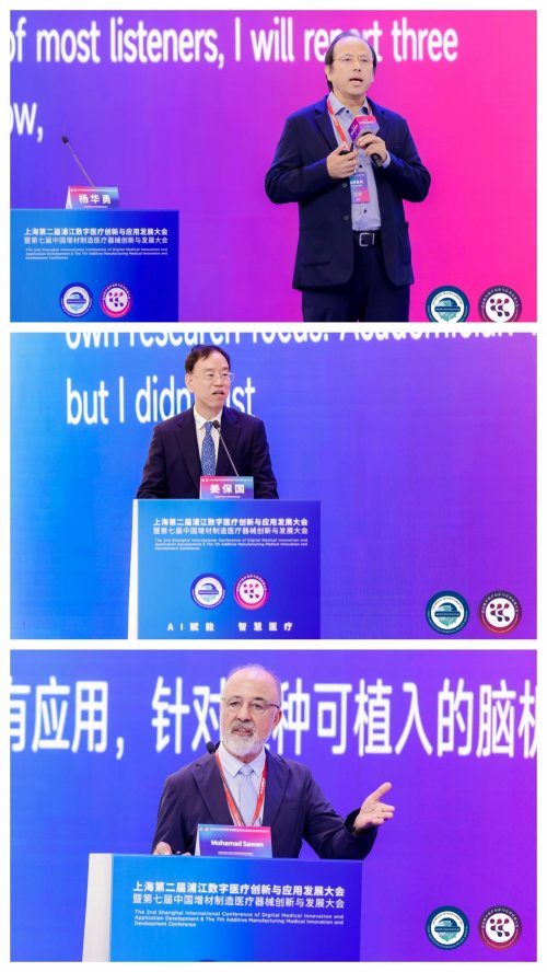 主旨報(bào)告環(huán)節(jié),多位海內(nèi)外院士、知名院校教授、醫(yī)院臨床專家圍繞腦機(jī)接口、生物3D打印、增材制造、人工智能、智能機(jī)器人等前沿技術(shù)融合于骨科、口腔、影像、康養(yǎng)等領(lǐng)域的應(yīng)用案例進(jìn)行了深入剖析。