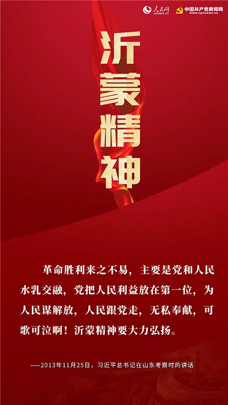 “沂蒙精神與延安精神、井岡山精神、西柏坡精神一樣,是黨和國家的寶貴精神財富,要不斷結合新的時代條件發揚光大。”