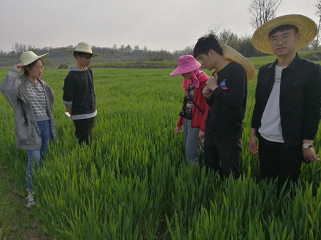 了解到王春玲所遇到的難題后,孫君艷教授及時向學校科技處匯報了情況,第二天便組建了包括土壤營養學專家劉合滿博士、植保專家史洪中教授、小麥栽培專家孫君艷教授、周強博士的服務團隊。“服務團隊組建的當天,我們就迅速趕到彎柳樹村進行診斷,并在現場對息縣遠古農業科技有限公司的酵素改良土壤方案進行考察和指導。”