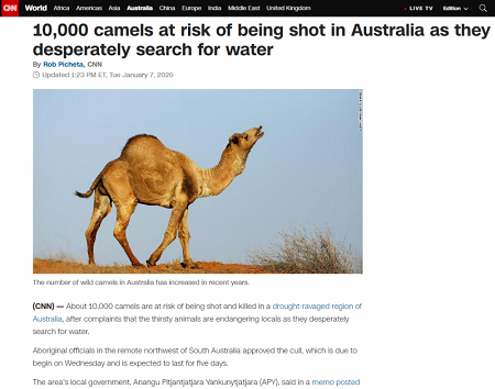 原因竟然是因為這些澳洲野生駱駝喝水太多。當地人稱,在干旱期,這些野生駱駝侵占當地水源,破壞牧場柵欄,嚴重干擾到他們的生活。