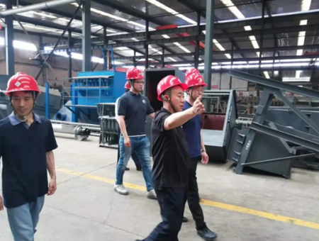 隨后,專家團隊深入企業一線,實地走訪企業生產車間,重點了解冷渣機、皮帶輸送機生產工序,與技術管理人員進行深入交流。