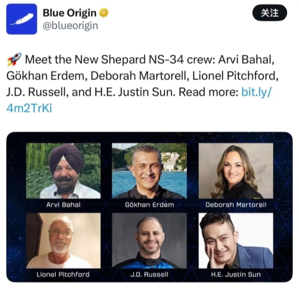 日前,藍色起源(Blue Origin)悄然公布了其最新一次太空飛行任務 NS-34 的乘客名單。熟悉的名字赫然在列——孫宇晨。