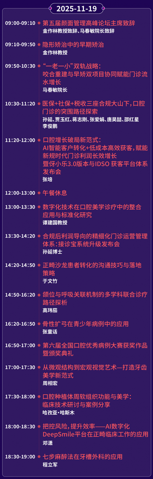 2、論壇日程僅供參考,最終的詳細(xì)日程安排,請(qǐng)大家持續(xù)關(guān)注“口腔醫(yī)學(xué)峰會(huì)”公眾號(hào),我們將第一時(shí)間為您更新相關(guān)信息。