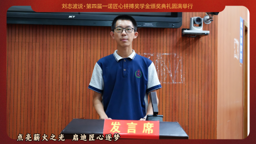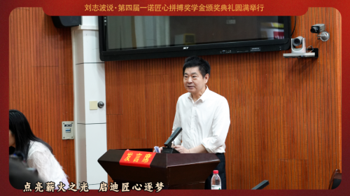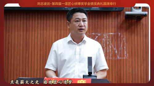 隨后劉博士做了“匠心拼搏,才能清華北大,唯有人生七立,才成棟梁之才”主題演講,希望通過“一諾匠心拼搏獎學金”,激勵年輕一代通過不懈努力和匠心拼搏實現(xiàn)個人價值和社會貢獻。通過邀請杰出人士分享他們的故事,以榜樣的力量點燃同學們夢想的火花。獎項不僅獎勵學術成就,更重視德行培養(yǎng)與全面素質發(fā)展,鼓勵學子們在各自領域追求卓越。通過支持家鄉(xiāng)教育,吸引校友共同參與對教育扶持的公益事業(yè)中來,匯聚力量推動社會進步,為家國培養(yǎng)棟梁之才。同時鼓勵學生們:“唯有不斷奮斗,方能不負青春、不負時代,人生有一萬種可能,選擇最正確的那一種可能,為家為國不負此生”。