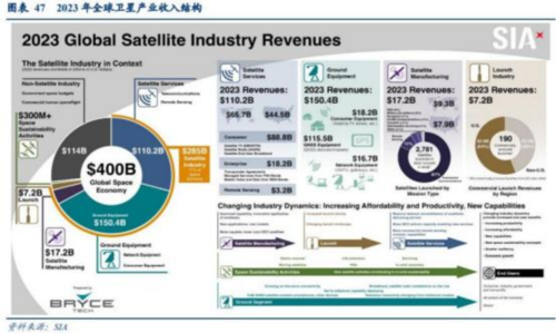 從價值量分布來看,2023 年地面設備與衛(wèi)星應用產(chǎn)業(yè)在全球衛(wèi)星產(chǎn)業(yè)中占比超 91%。根據(jù) SIA《2024 年衛(wèi)星產(chǎn)業(yè)狀況報告》的統(tǒng)計,2023 年全球衛(wèi)星產(chǎn)業(yè)收入構成如下:衛(wèi)星制造產(chǎn)業(yè)規(guī)模達 172 億美元(占比 6%);衛(wèi)星發(fā)射產(chǎn)業(yè)規(guī)模達 72 億美元( 占比 2.5%) ;地面設備產(chǎn)業(yè)規(guī)模達 1504 億美元( 占比 52.8%);衛(wèi)星應用產(chǎn)業(yè)規(guī)模達 1102 億美元(占 比 38.7%)。