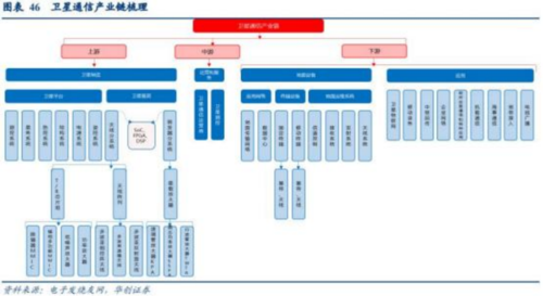 衛(wèi)星通信產(chǎn)業(yè)鏈主要包括上游衛(wèi)星制造,中游衛(wèi)星運營和服務,以及下游地面設備和衛(wèi)星應用等環(huán)節(jié)。其中: