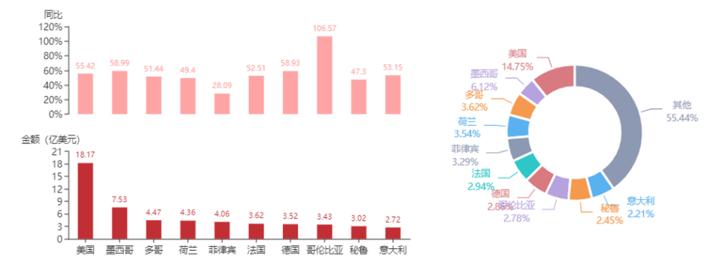 市場方面,前12個月,我國摩托車出口額排名前十的國家/地區分別為美國、墨西哥、多哥、荷蘭、菲律賓、法國、德國、哥倫比亞、秘魯、意大利,合計占我國該產品出口額的44.56%。
