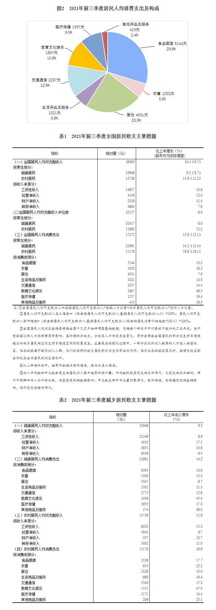2021年前三季度居民收入和消費支出情況