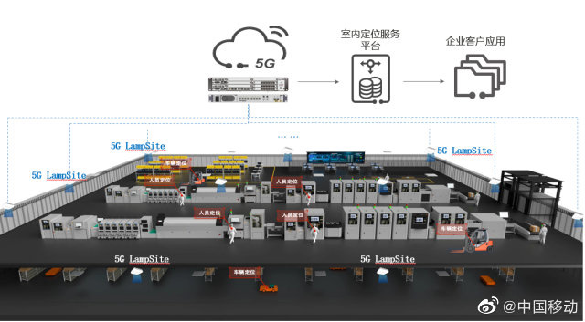 華為團泊洼 5G 室內定位是中國移動廣東公司聯手華為采用 4.9GHz 頻段 5G 網絡部署,由中國移動上海產業研究院提供融合定位平臺,是首個實現室內精準定位的試商用項目。