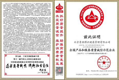 (北京青顏博識健康管理有限公司 獲獎證書)