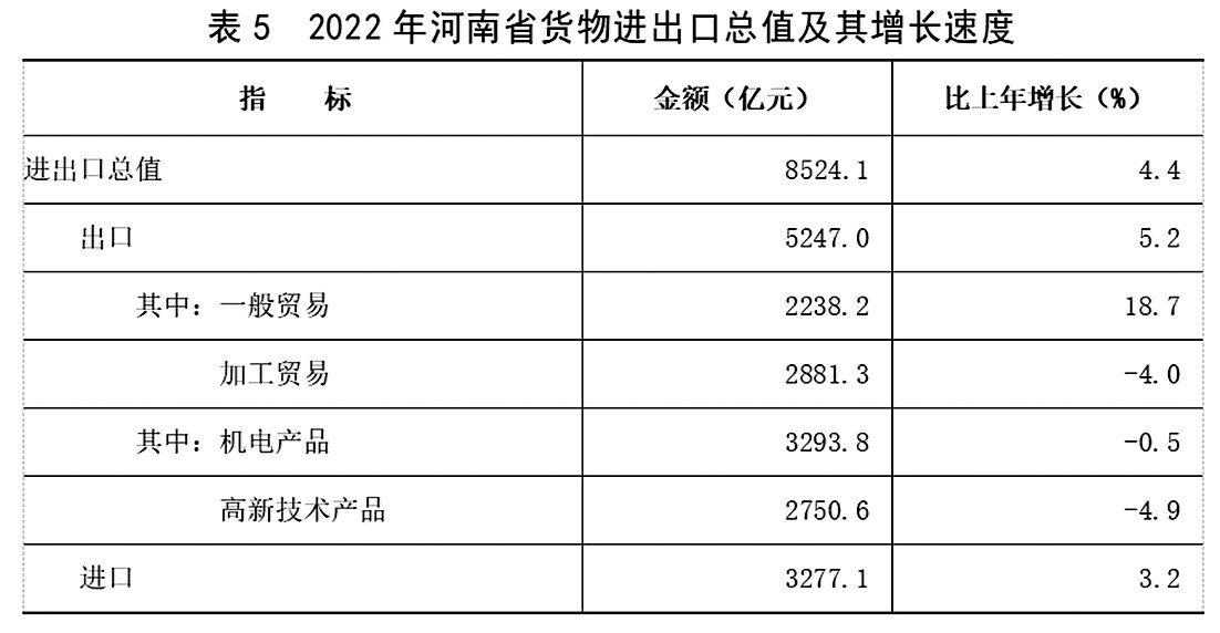 2022年河南省國民經(jīng)濟和社會發(fā)展統(tǒng)計公報
