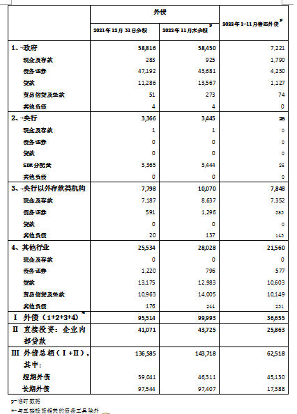 表二:2022年11月末羅外債余額及1-11月外債償還情況表