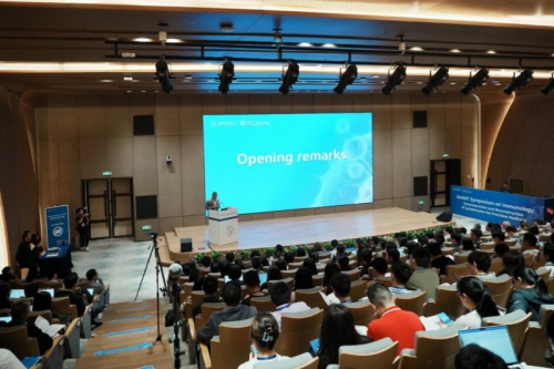 針對研討會第二個專題“抗原受體與信號(Antigen receptors & signaling)”多位專家學者做了精彩報告。來自上海科技大學Haopeng Wang深刻解析了LAG3免疫檢查點的功能和分子機制,為下一代免疫療法提供新思路。來自哈爾濱工業大學的Zhiwei Huang從結構生物學角度探討了TCR-CD3復合物的信號機制,為靶向TCR-CD3開創治療方法提供新視角。在會議的第三個專題“免疫學的機器學習(Machine learning of immunity)”中,來自莫納什大學的Jiangning Song介紹了人工智能在生物醫學數據分析中的應用,及其助力生物醫藥研發的多種可能。來自清華大學的Xiaowo Wang研究新抗原預測中的偏差控制問題,并提出了優化策略。來自浙江大學的Wanlu Liu介紹單細胞TCR測序數據整合工具,提出了系統性新方法。在會議第一天的最后,本次會議的第二位主旨講者,來自英國弗朗西斯·克里克研究所Carola Vinuesa教授重點講解了B細胞耐受機制及其在系統性紅斑狼瘡(SLE)中的作用。她指出,SLE的遺傳因素日益清晰,TLR7和SAT1基因突變在疾病發生中扮演關鍵角色。她的研究還揭示,年齡相關的B細胞(ABCs)可能是SLE患者自身抗體的主要來源,并強調靶向ABCs可能成為未來精準治療的新策略。此外,Vinuesa教授還分享了團隊在B-1a細胞的前沿研究,揭示了這群細胞參與維持免疫耐受的關鍵分子機制。