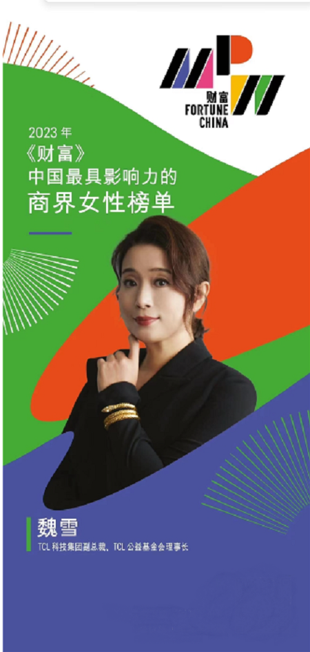 TCL魏雪入選《財富》“中國最具影響力的商界女性”榜單